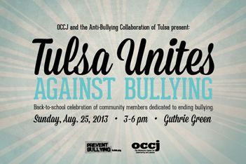 OCCJ is proud to team up with the Anti-Bullying Collaboration to bring you Tulsa Unites Against Bullying. This event is a back-to-school celebration of community members dedicated to ending bullying in the Tulsa community.